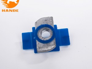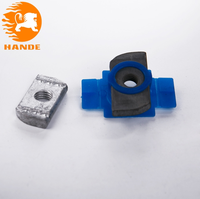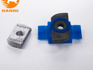 塑翼螺母由菱形螺母與塑料外殼組成,用于光伏支架安裝過程與槽型鋼組合起到固定支架的作用。